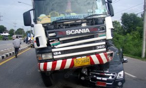 2011年7月18日、タイ東部プラチンブリ県ガビンブリ郡ノンシ町のスワンソン道の検問所にスウェーデン産スカニア製トラックがノーブレーキで突っ込み、ホンダ製乗用車に接触したうえに警察官ノパポン・クトサプ巡査部長(40歳・男性)をはね飛ばし、さらにはいすゞ製ピックアップトラックに乗り上げる事故を起こしました。ノパポン巡査部長は救急搬送されましたが、ガビンブリ病院で脳挫傷による死亡が確認されました。