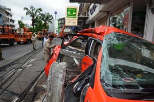 警察当局の調べによりますと、バスはバンコク都の南バスターミナルを7月2日19時00分に出発しました。目的地は南部スラタニ県ドンサク郡のフェリー乗り場です。証言によりますと、事故直前にタイヤがパンクするような音が聞こえ、バスが中央分離帯の立木に衝突してハンドルを失い、横転しながら電柱2本に激突した、とのことです。